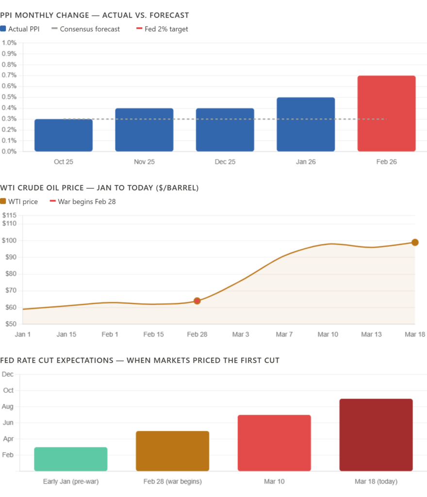 The February PPI report is the clearest signal yet that inflation was already re-accelerating before the Iran war began. The March and April reports will layer in the full impact of oil above $100, meaning the inflationary picture is almost certain to get worse before it gets better. For the Federal Reserve, a central bank legally mandated to control inflation and support employment, the combination of rising prices and a weakening labor market is as difficult an environment as it faces in a generation.